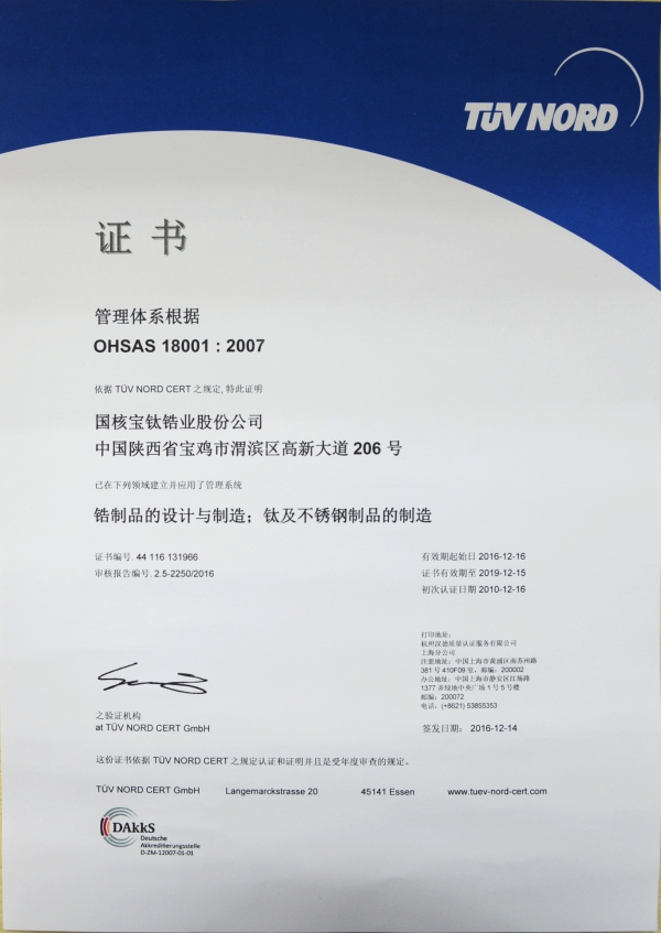 通過(guò)德國(guó)漢德公司對(duì)ISO9001、BS OHSAS 18001、ISO14001體系認(rèn)證