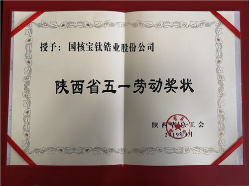 國核鋯業(yè)榮獲陜西省五一勞動獎狀