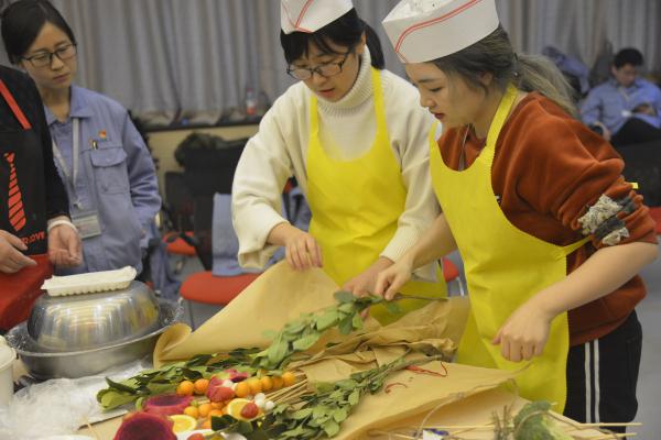 本次廚藝大賽共分為比刀工、創(chuàng)意拼盤、包餃子三個環(huán)節(jié)進(jìn)行,來自公司9個分會的各參賽代表以精湛的刀工、絕妙的創(chuàng)意和協(xié)作統(tǒng)一的團(tuán)隊(duì)配合呈現(xiàn)了一場精彩絕倫的對決。在展示區(qū)中,栩栩如生的手工雕刻,精美絕倫的特色糕點(diǎn),熱氣騰騰的水餃帶給觀眾味覺和視覺上的雙重享受,充分顯示了國核鋯業(yè)員工高超的烹飪技能,展現(xiàn)了鋯業(yè)人的風(fēng)采。